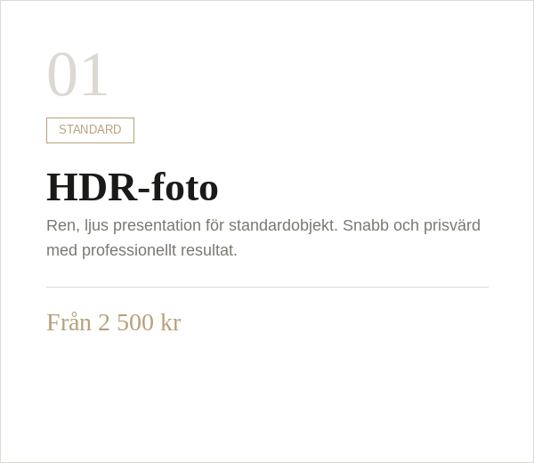 Tre fotograferingsmetoder med tydliga skillnader — så att du alltid kan välja rätt nivå beroende på objektet och säljarens förväntningar.